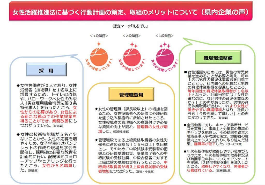 トップページ » ブログ » 一般事業主行動計画(女性活躍推進法) » Ⅵ 女性活躍推進法「一般事業主行動計画」策定に取り組むメリットは?